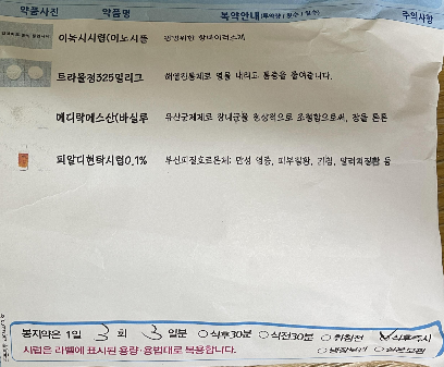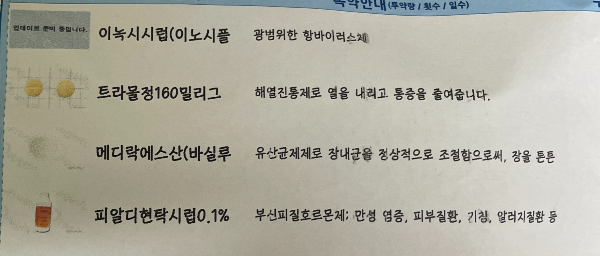 아직도 수족구가 남아있다고 표현하셔서 3일 치 약을 받아왔다.