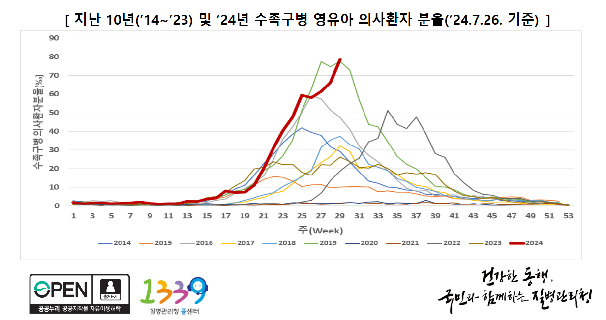 영유아 수족구도 최근 10년간 가장 큰 유행 중이라고 한다.