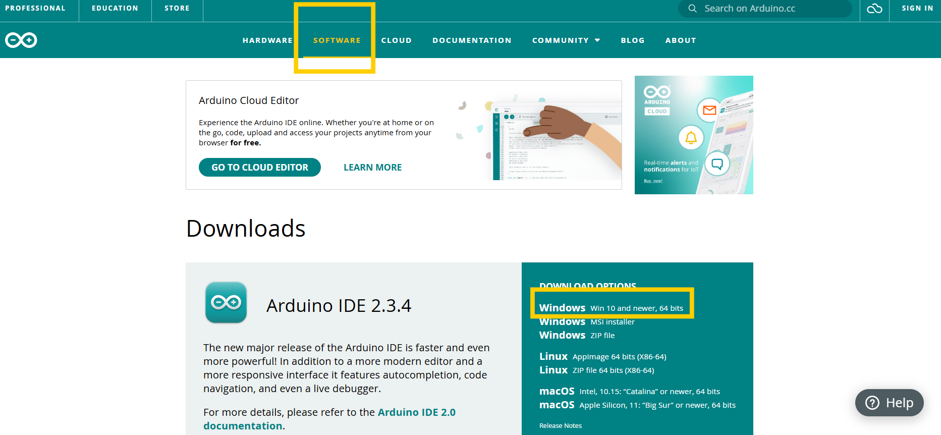 1. 아두이노 홈페이지-software 클릭