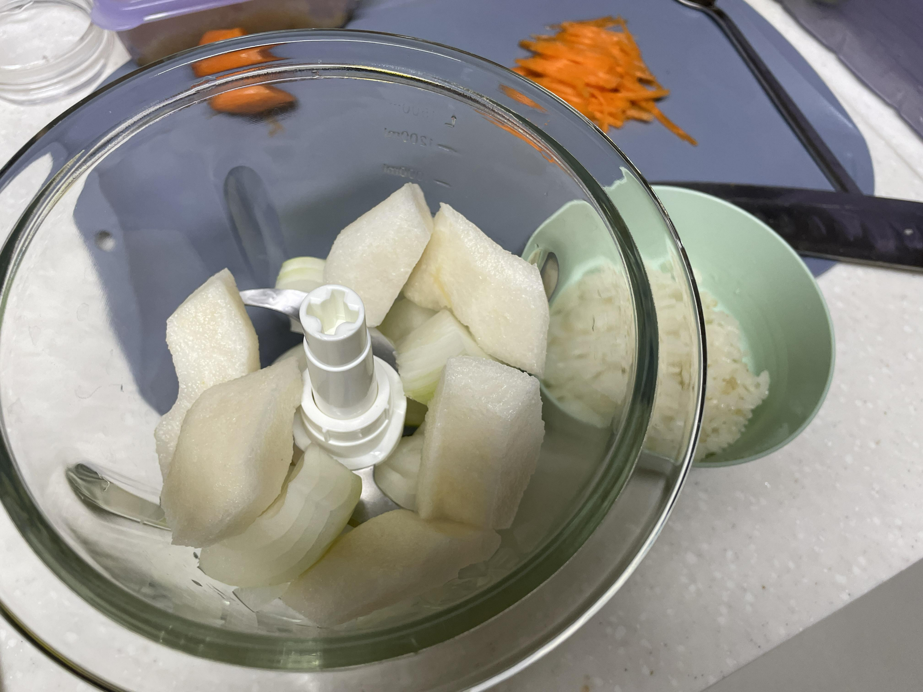 5. 사과나 배(또는 즙), 양파, 마늘, 무, 찬밥 다함께 갈아주기