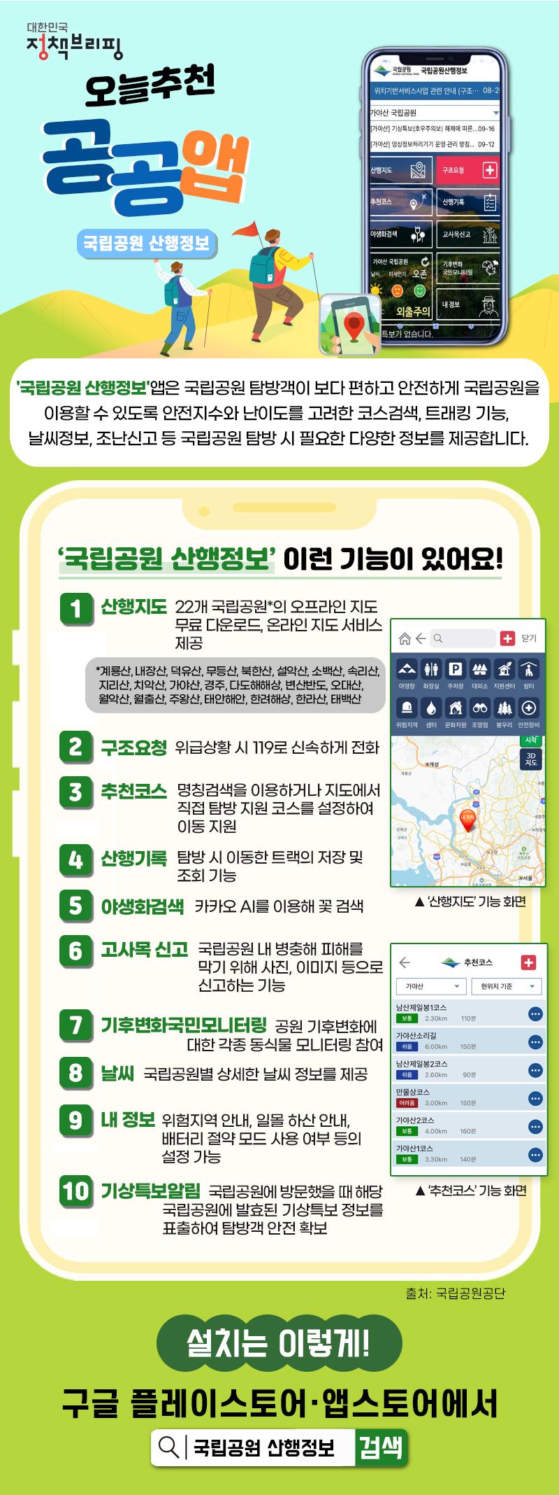 - 등산로를 미리 확인하도록 합니다. 등산로, 대피로 등 산행정보는 생활안전지도로 확인가능합니다.