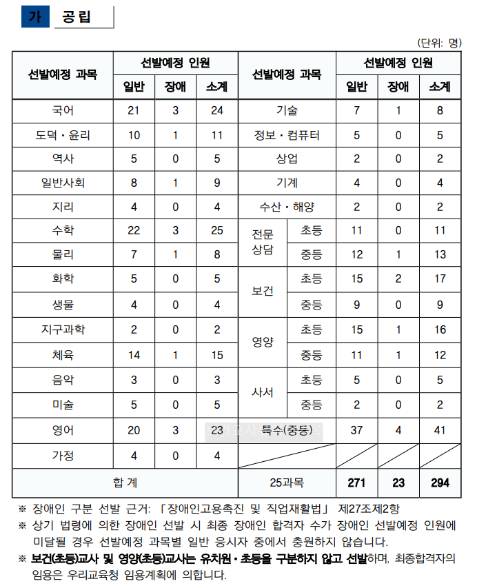 *공립 중등학교 교사, 보건·사서·전문상담·영양·특수(중등) 교사 임용후보자 선정경쟁시험 사전예고는 17개 시도교육청 해당 홈페이지에서 확인할 수 있습니다. 따라서 제가 가져온 자료는 각 교육청 홈페이지에서 가져온 자료임을 먼저 알립니다.