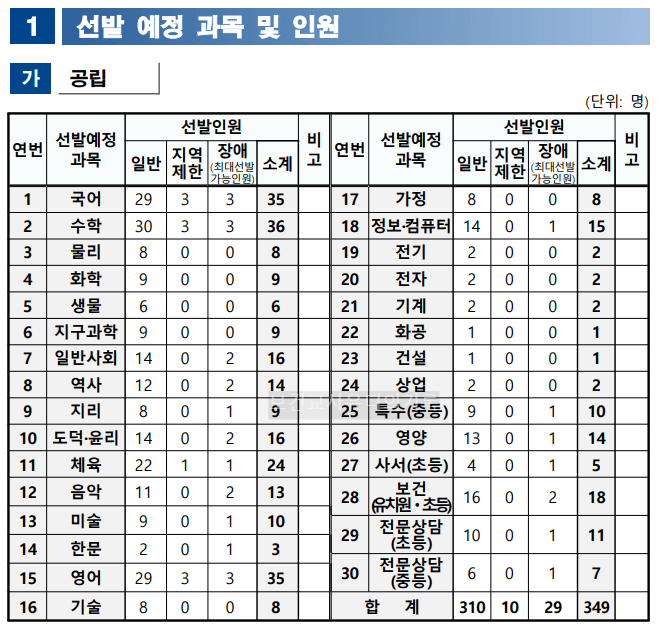 중등교사 임용준비 방법(응시자격, 선발예정 과목 인원 확인, 시험 관련 사항)