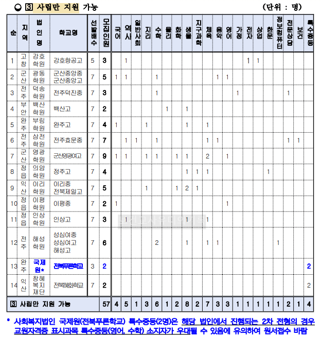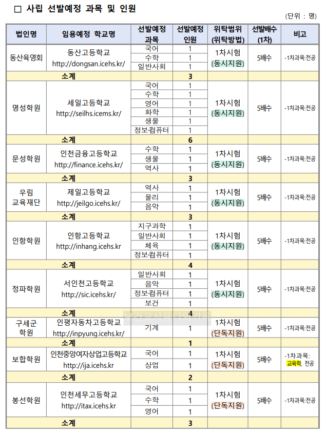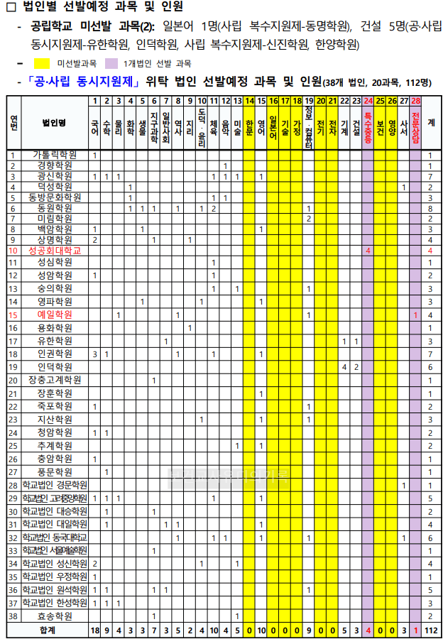 **선발예정인원(사립)은 공사립 동시지원+사립만 지원가능 전부 포함한 수 입니다. 참고바랍니다.