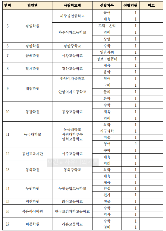 * 각 교육청별 가나다 순으로 사전예고 선발인원 정리해서 올렸습니다. 참고 바랍니다.
