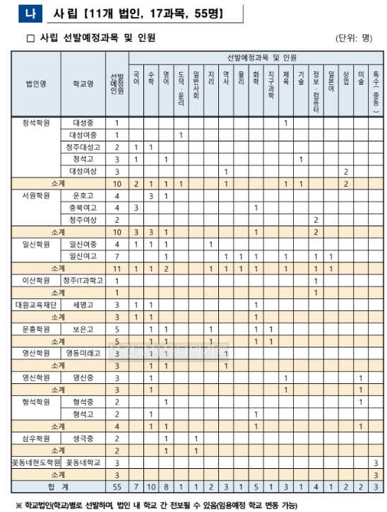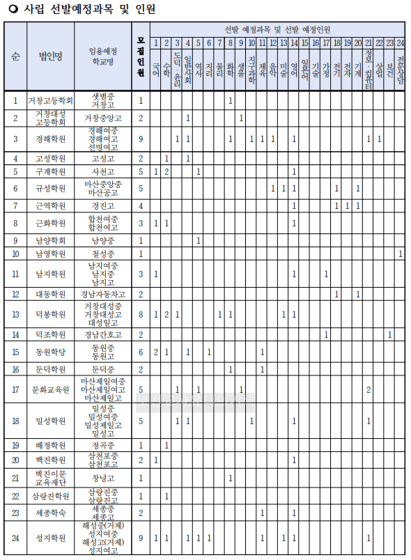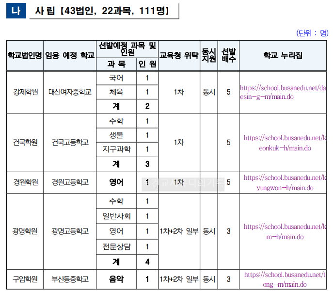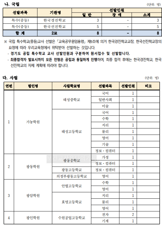 **선발예정인원(사립)은 공사립 동시지원+사립만 지원가능 전부 포함한 수 입니다. 참고바랍니다.