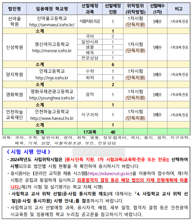 2024학년도 중등 임용고시 시험일정과 전 과목 교육청별 선발예정인원을 아래에서 자세히 안내드립니다.