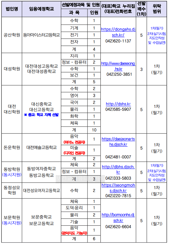 중등임용시험 시험계획 공고문(대구사립).hwp