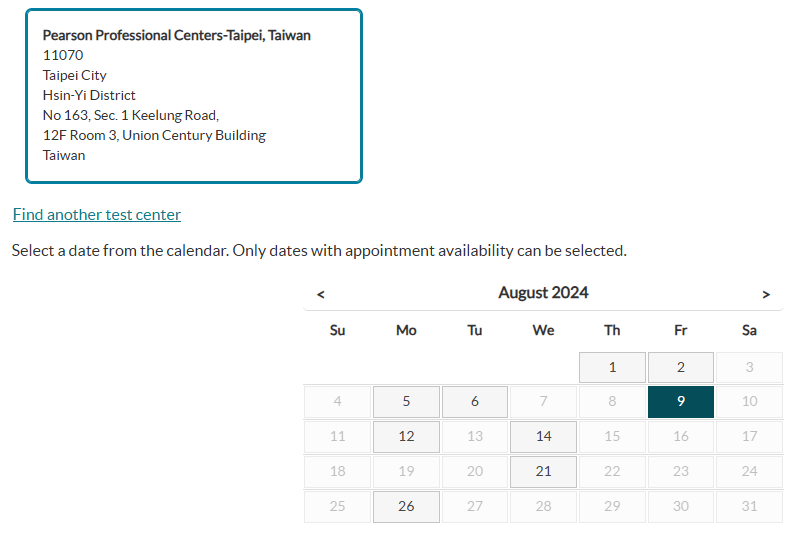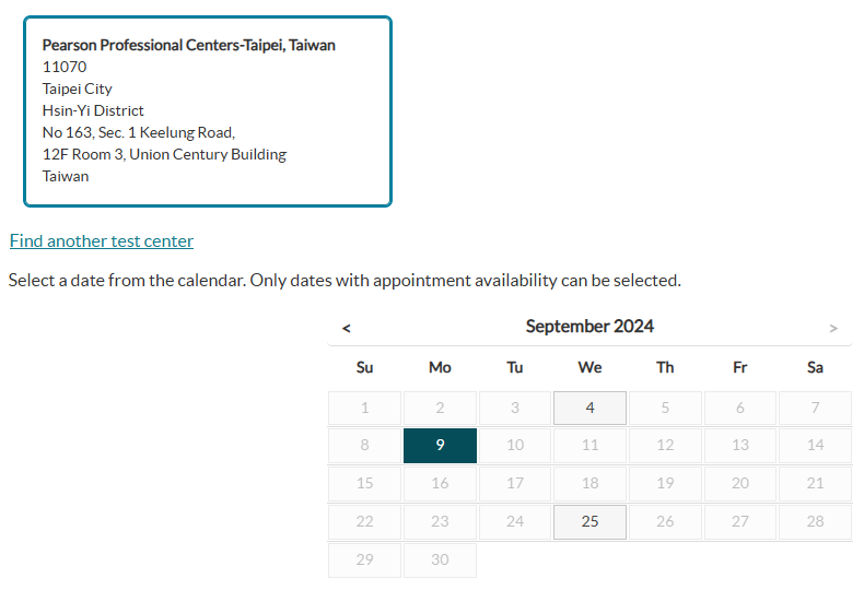 대만 피어슨뷰 센터 시험일정을 공유하니, 참고바랍니다.