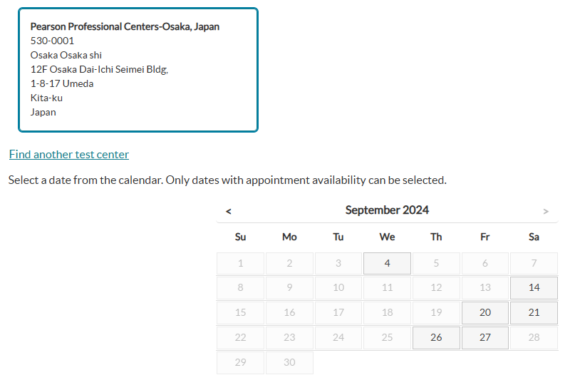 NCLEX-RN 9월 시험일정 (오사카 피어슨뷰 센터)