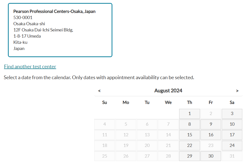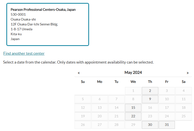 6월에는 오사카 피어슨뷰 센터에 그나마 8일 토요일 자리가 하나 있습니다. 지금 가장 유력하게 선택을 고민중인 날짜는 6월 7일, 8일 입니다.