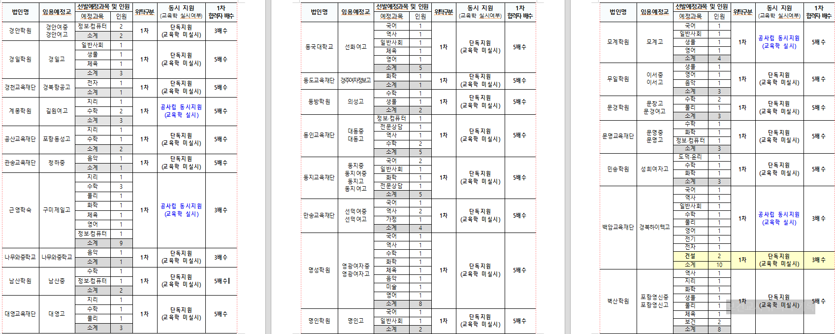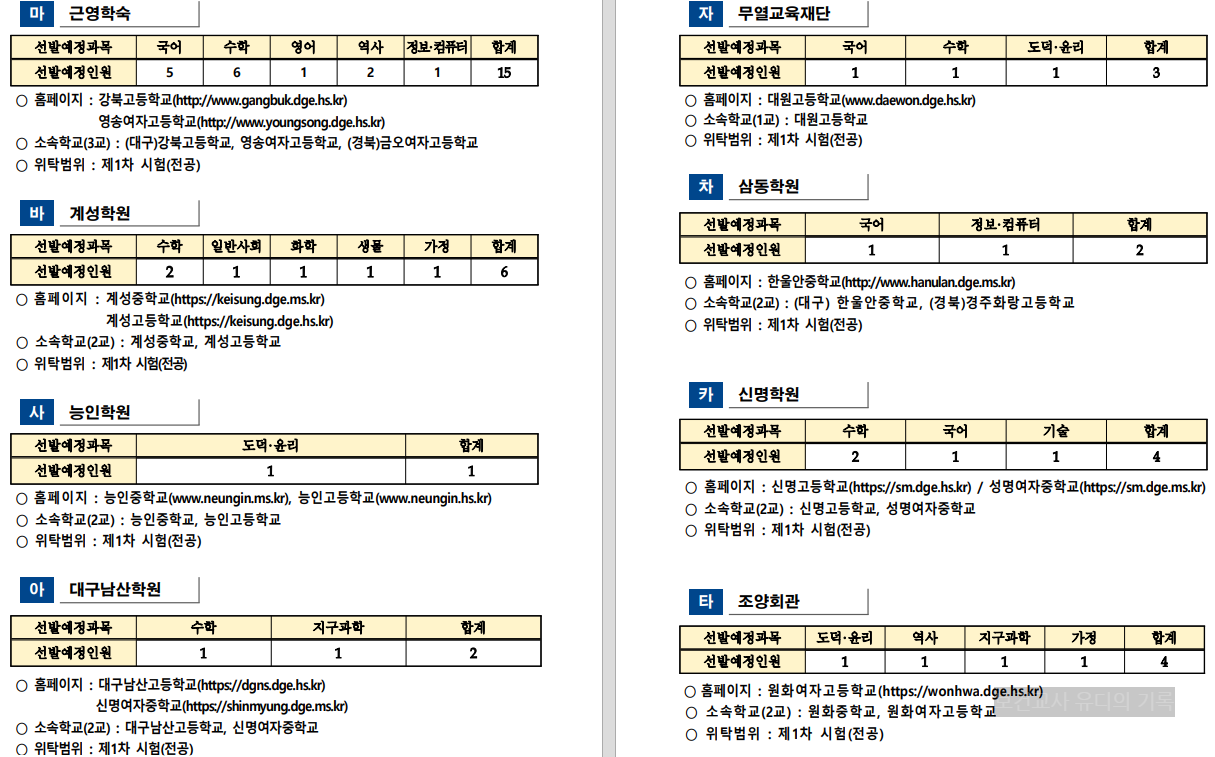 !!! 정확한 내용은 해당 교육청 공고를 반드시 확인하세요!!!