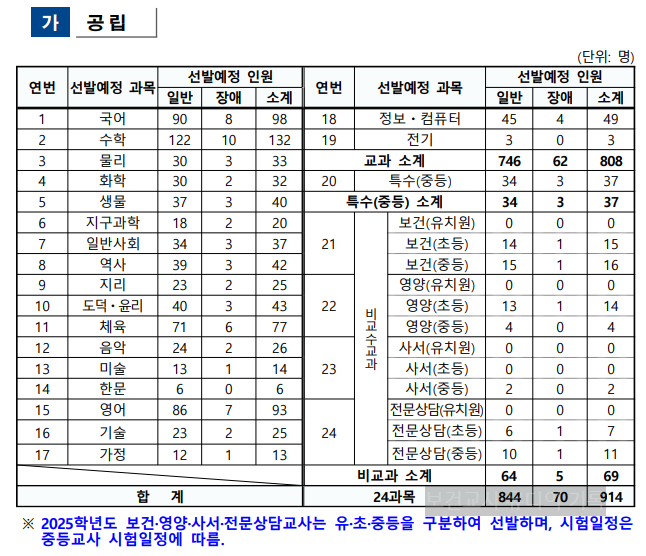 2025학년도 중등 임용고시 시험일정과 전 과목 교육청별 공립, 국립, 사립 선발예정인원을 아래에서 자세히 안내드립니다.