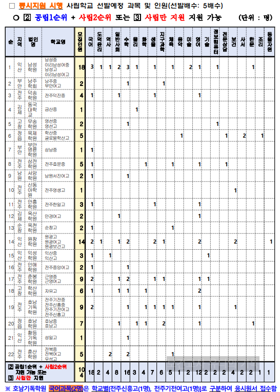 **선발예정인원(사립)은 공사립 동시지원+사립만 지원가능 전부 포함한 수입니다.