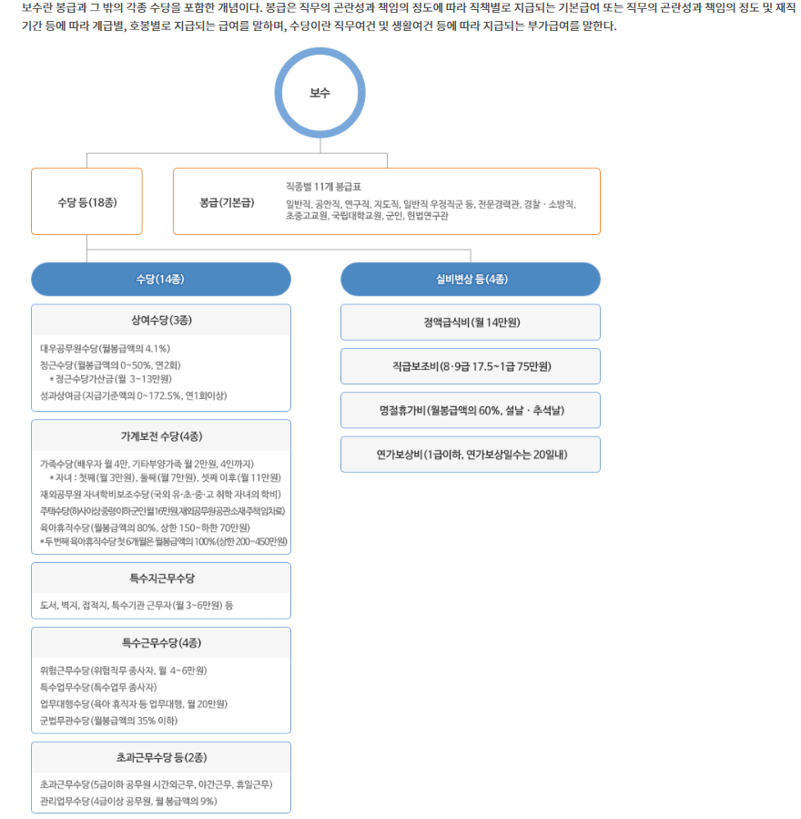 공무원이 받는 보수체계는 아래와 같다.