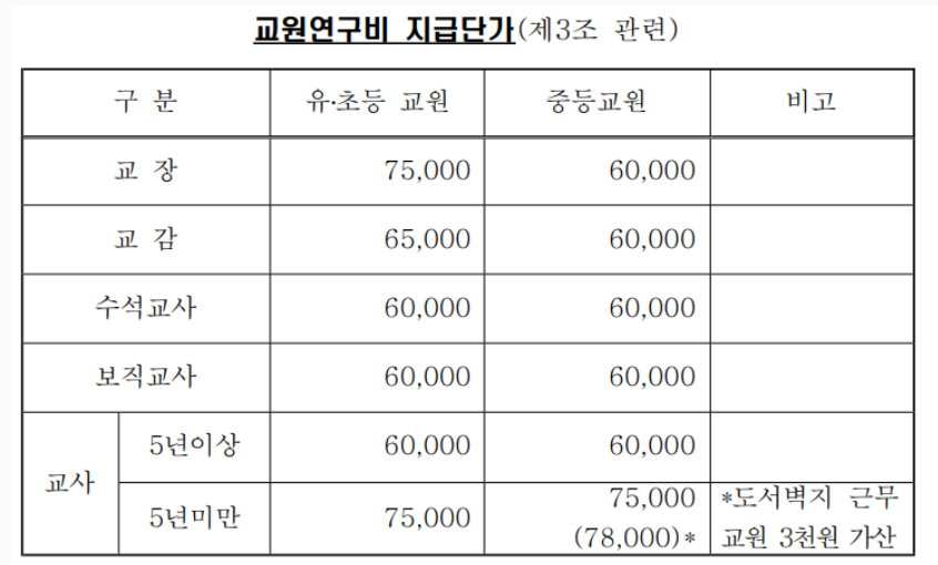 3. 교직수당: 매달 25만원씩 줌