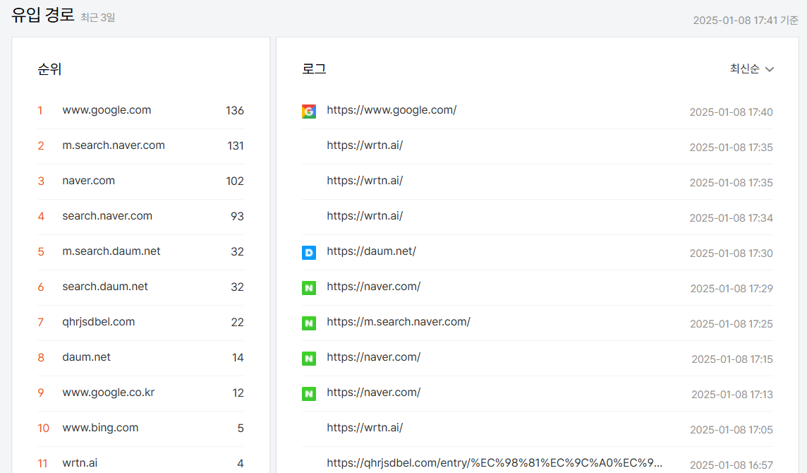 블로그 관리에서 유입경로를 확인할 수 있는데,